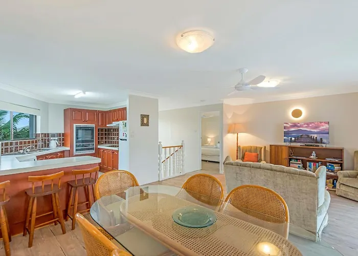 Karingal 5 Villa is a beachfront venue placed 850 metres away from Pat Morton Lookout Lennox Head. The accommodation will provide you with 2 bedrooms, a fully equipped kitchen and 2 bathrooms.